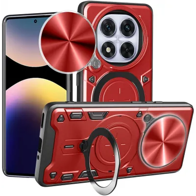 Coque arrière Phonesta IronLock anneau et MagSafe pour Xiaomi Redmi Note 14 Pro 4G/5G/14 Pro Plus / Xiaomi Poco X7 - Rouge