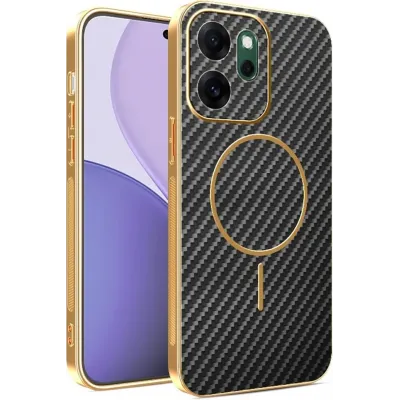 L’un des points forts de cette coque est son puissant anneau magnétique MagSafe doré, qui permet d'utiliser facilement les accessoires MagSafe tels que les chargeurs sans fil ou les supports. La texture en fibre de carbone confère un style moderne et évite les traces de doigts, gardant votre Oppo Reno14 F/FS toujours propre et élégant.