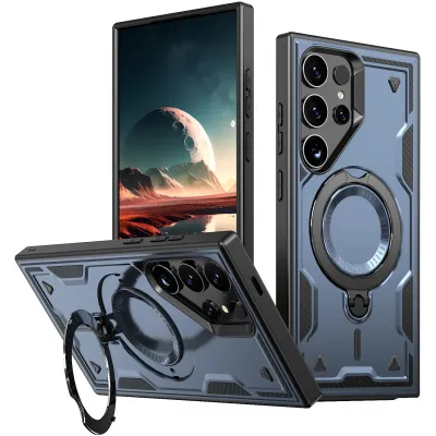 Coque arrière Phonesta MagLock Armor anneau et MagSafe pour Samsung Galaxy S25 Ultra - Bleu foncé