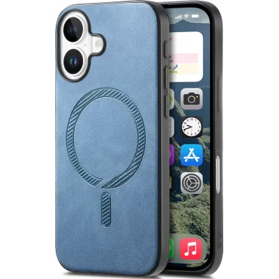 • Coque arrière Phonesta Retro Vegan Leather MagSafe pour Apple iPhone 16 - Bleu