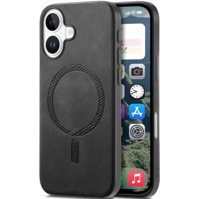 Coque arrière Phonesta Retro Vegan Leather MagSafe pour Apple iPhone 16 Plus - Noir