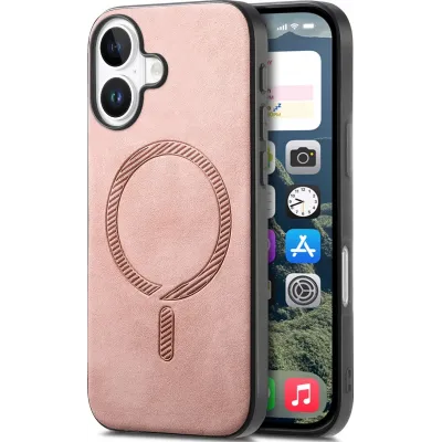 Coque arrière Phonesta Retro Vegan Leather MagSafe pour Apple iPhone 16 Plus - Rose
