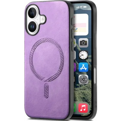 Coque arrière Phonesta Retro Vegan Leather MagSafe pour Apple iPhone 16 Plus - Violet