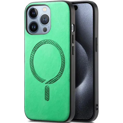Coque arrière Phonesta Retro Vegan Leather MagSafe pour Apple iPhone 16 Pro - Vert