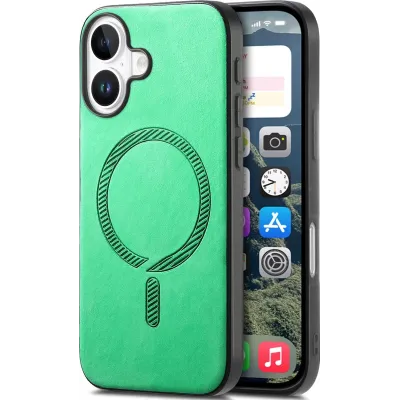 Coque arrière Phonesta Retro Vegan Leather MagSafe pour Apple iPhone 16 - Vert
