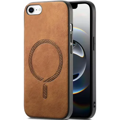 • Coque arrière Phonesta Retro Vegan Leather MagSafe pour Apple iPhone 17e/16e - Marron
