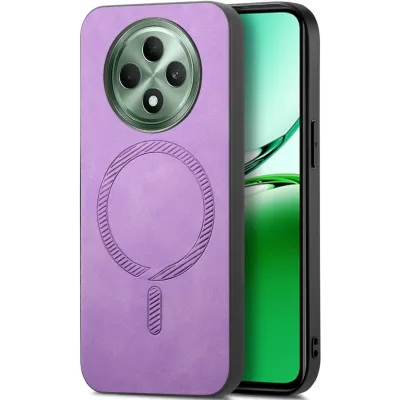 Coque arrière Phonesta Retro Vegan Leather MagSafe pour Oppo Reno12 F/Reno12 FS - Violet