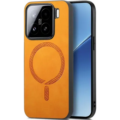 Coque arrière Phonesta Retro Vegan Leather MagSafe pour Xiaomi 15 - Orange