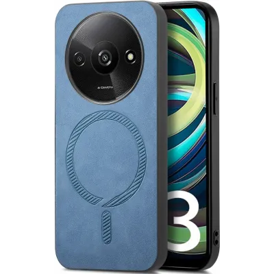 Coque arrière Phonesta Retro Vegan Leather MagSafe pour Xiaomi Redmi A3 - Bleu