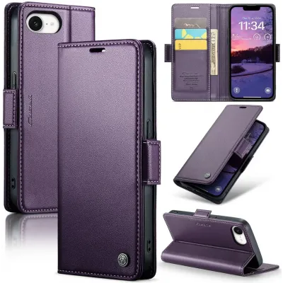 • Coque portefeuille CASEME Litchi Texture pour Apple iPhone 17e/16e - Violet