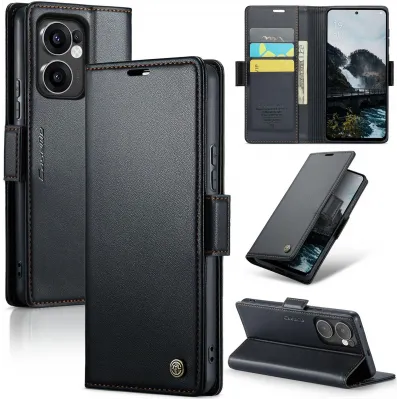 • Coque portefeuille CASEME Litchi Texture pour Oppo Reno13 F 4G/5G / Reno13 FS 5G - Noir