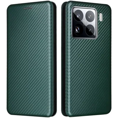 Coque portefeuille Phonesta Carbon Fiber Skin pour Xiaomi 15 - Vert foncé
