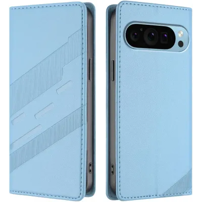 Coque portefeuille Phonesta Embossed Lines pour Google Pixel 9 / 9 Pro - Bleu clair