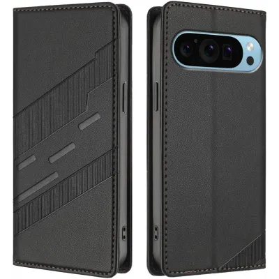 Coque portefeuille Phonesta Embossed Lines pour Google Pixel 9 / 9 Pro - Noir