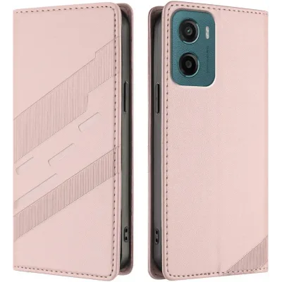 Coque portefeuille Phonesta Embossed Lines pour Motorola Moto G05 / Moto E15 - Rose