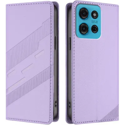 Coque portefeuille Phonesta Embossed Lines pour Motorola Moto G75 - Violet