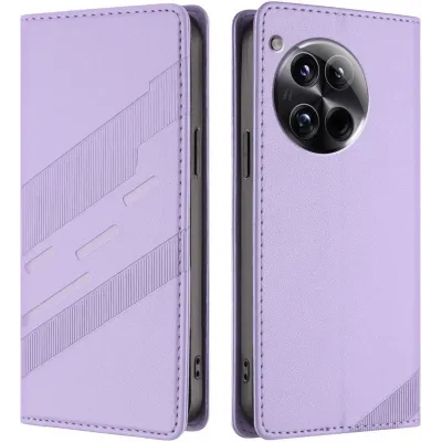 Coque portefeuille Phonesta Embossed Lines pour OnePlus 12 - Violet