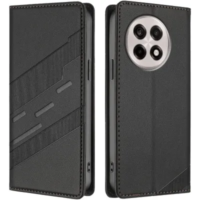 Coque portefeuille Phonesta Embossed Lines pour OnePlus 13R - Noir