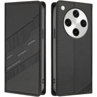 • Coque portefeuille Phonesta Embossed Lines pour Oppo Find X8 Pro - Noir