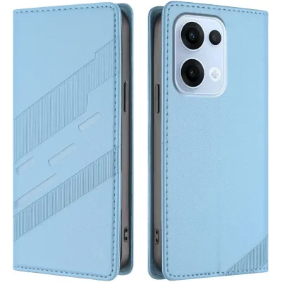 Coque portefeuille Phonesta Embossed Lines pour Oppo Reno13 - Bleu clair