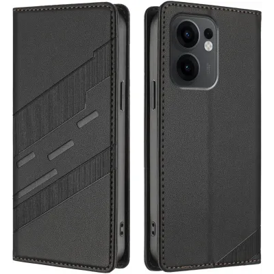 Coques de téléphoneCoques pour OppoCoques Oppo Reno13 FS 5GCoque portefeuille Phonesta Embossed Lines pour Oppo Reno13 F 4G/5G / Reno13 FS 5G - Noir