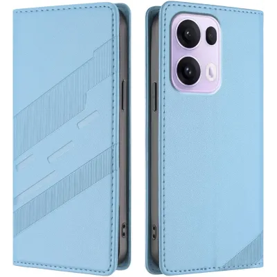 Coque portefeuille Phonesta Embossed Lines pour Oppo Reno13 Pro - Bleu clair