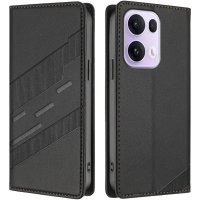Coques de téléphoneCoques pour OppoCoques Oppo Reno13 ProCoque portefeuille Phonesta Embossed Lines pour Oppo Reno13 Pro - Noir