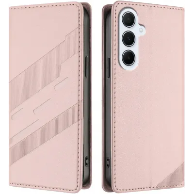 Coque portefeuille Phonesta Embossed Lines pour Samsung Galaxy A26 - Rose