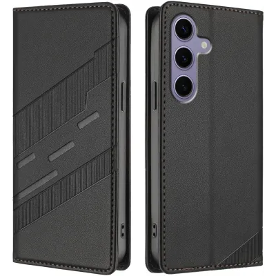 Coques de téléphoneCoques pour Samsung GalaxyCoques Samsung Galaxy S24 FECoque portefeuille Phonesta Embossed Lines pour Samsung Galaxy S24 FE - Noir