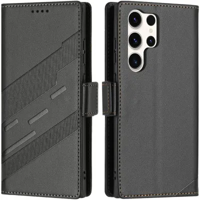 Coque portefeuille Phonesta Leather Vertical Flip pour Samsung Galaxy S25 Ultra - Noir