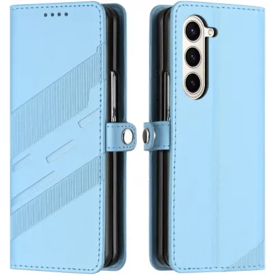 Coque portefeuille Phonesta Embossed Lines pour Samsung Galaxy Z Fold 6 - Bleu clair