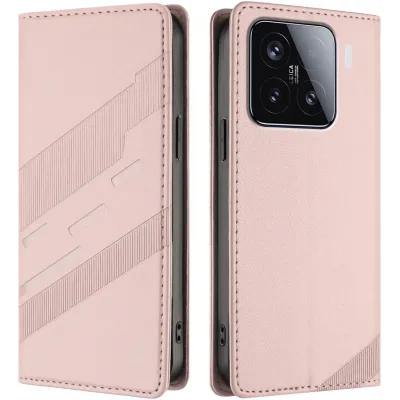 • Coque portefeuille Phonesta Embossed Lines pour Xiaomi 15 - Rose