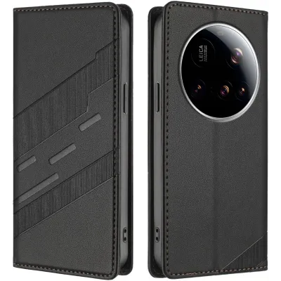 Coques de téléphoneCoques pour XiaomiCoques Xiaomi 15 UltraCoque portefeuille Phonesta Embossed Lines pour Xiaomi 15 Ultra - Noir