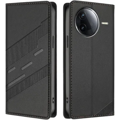 Coques de téléphoneCoques pour XiaomiCoques Xiaomi Poco F7 UltraCoque portefeuille Phonesta Embossed Lines pour Xiaomi Poco F7 Pro/F7 Ultra - Noir
