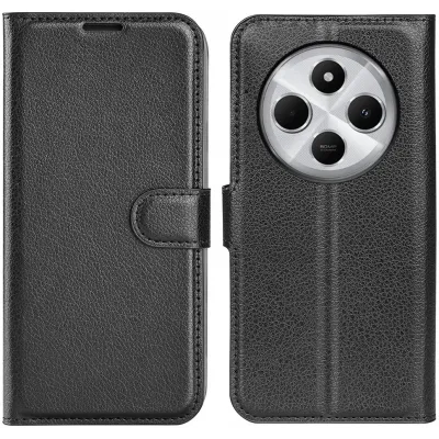 Coque portefeuille Phonesta Litchi Skin pour Xiaomi Redmi 14C / Xiaomi Poco C75 - Noir