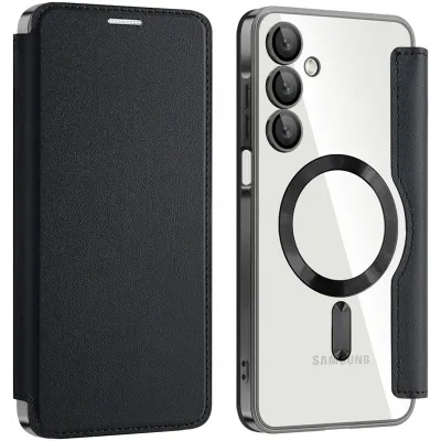 • Coque portefeuille Phonesta Luxury Crystal avec MagSafe pour Samsung Galaxy A16 - Noir