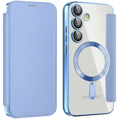 • Coque portefeuille Phonesta Luxury Crystal avec MagSafe pour Samsung Galaxy S24 FE - Bleu clair