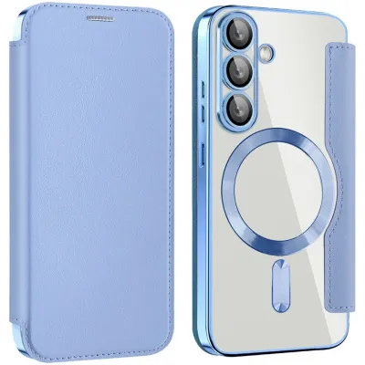 Coque portefeuille Phonesta Luxury Crystal avec MagSafe pour Samsung Galaxy S25 Plus/S24 Plus - Bleu clair