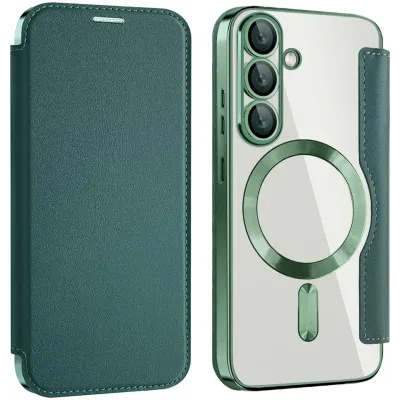 Coque portefeuille Phonesta Luxury Crystal avec MagSafe pour Samsung Galaxy S25 Plus/S24 Plus - Vert foncé