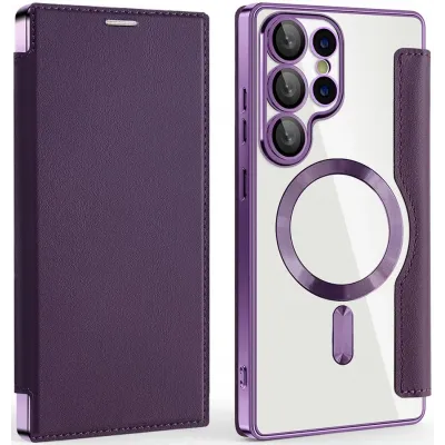 • Coque portefeuille Phonesta Luxury Crystal avec MagSafe pour Samsung Galaxy S25 Ultra - Violet foncé