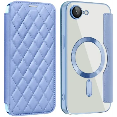 Coque portefeuille Phonesta Luxury Crystal Puffed avec MagSafe pour Apple iPhone 17e/16e - Bleu clair