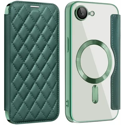 • Coque portefeuille Phonesta Luxury Crystal Puffed avec MagSafe pour Apple iPhone 17e/16e - Vert foncé