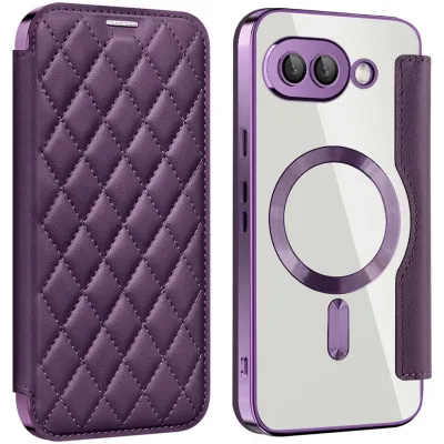 Coques de téléphoneCoques pour GoogleCoques Google Pixel 9aCoque portefeuille Phonesta Luxury Crystal Puffed avec MagSafe pour Google Pixel 9a - Violet foncé