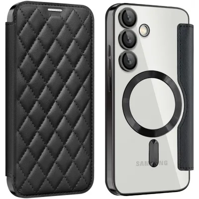 • Coque portefeuille Phonesta Luxury Crystal Puffed avec MagSafe pour Samsung Galaxy S24 FE - Noir