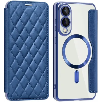 • Coque portefeuille Phonesta Luxury Crystal Puffed avec MagSafe pour Samsung Galaxy S25 Edge - Bleu foncé