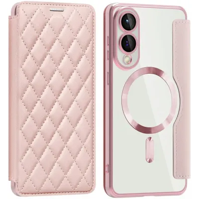 Coque portefeuille Phonesta Luxury Crystal Puffed avec MagSafe pour Samsung Galaxy S25 Edge - Rose