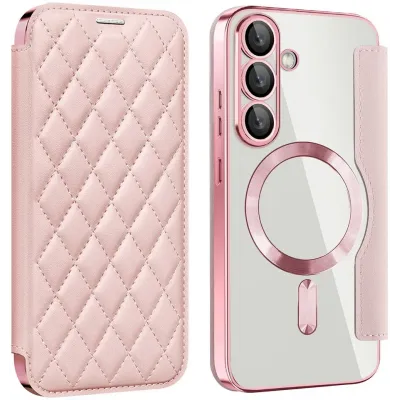 Coque portefeuille Phonesta Luxury Crystal Puffed avec MagSafe pour Samsung Galaxy S25 Plus/S24 Plus - Rose