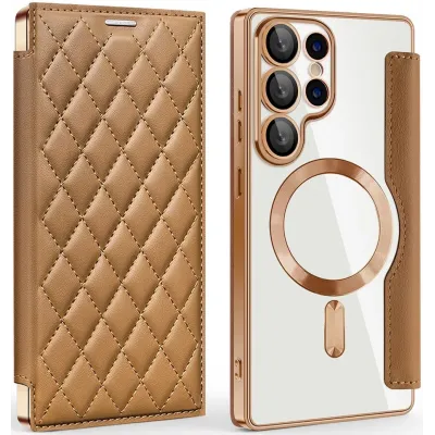 • Coque portefeuille Phonesta Luxury Crystal Puffed avec MagSafe pour Samsung Galaxy S25 Ultra - Marron