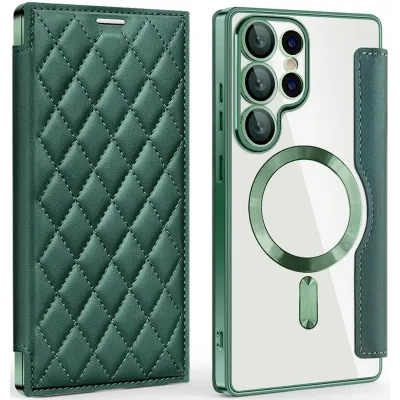 Coques de téléphoneCoques pour Samsung GalaxyCoques Samsung Galaxy S25 UltraCoque portefeuille Phonesta Luxury Crystal Puffed avec MagSafe pour Samsung Galaxy S25 Ultra - Vert foncé