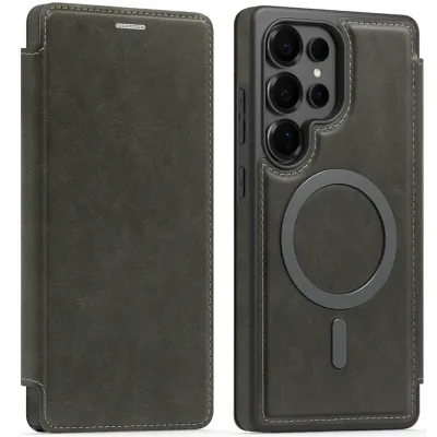 • Coque portefeuille Phonesta Luxury Leather avec MagSafe pour Samsung Galaxy S25 Ultra - Gris